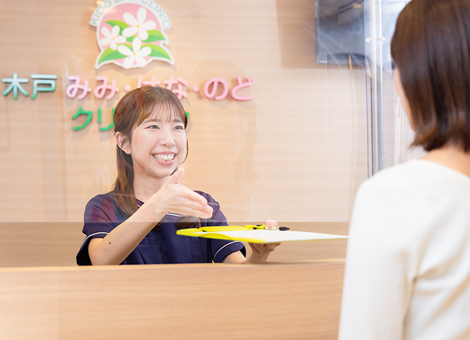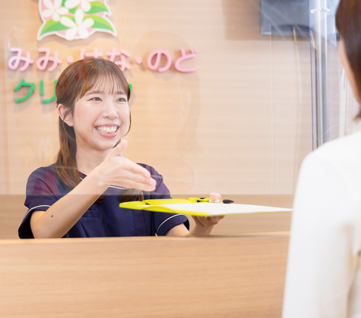 業務の円滑化と効率化のために、業務中はインカムを使用して情報を共有。患者様のご案内やスタッフ間の連携もスムーズです。 -
